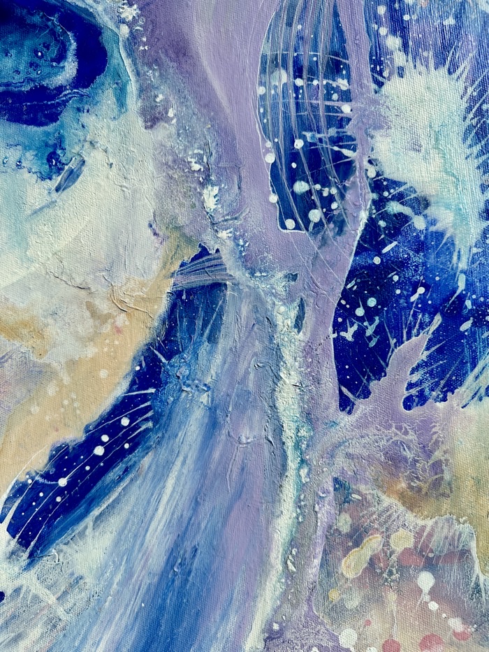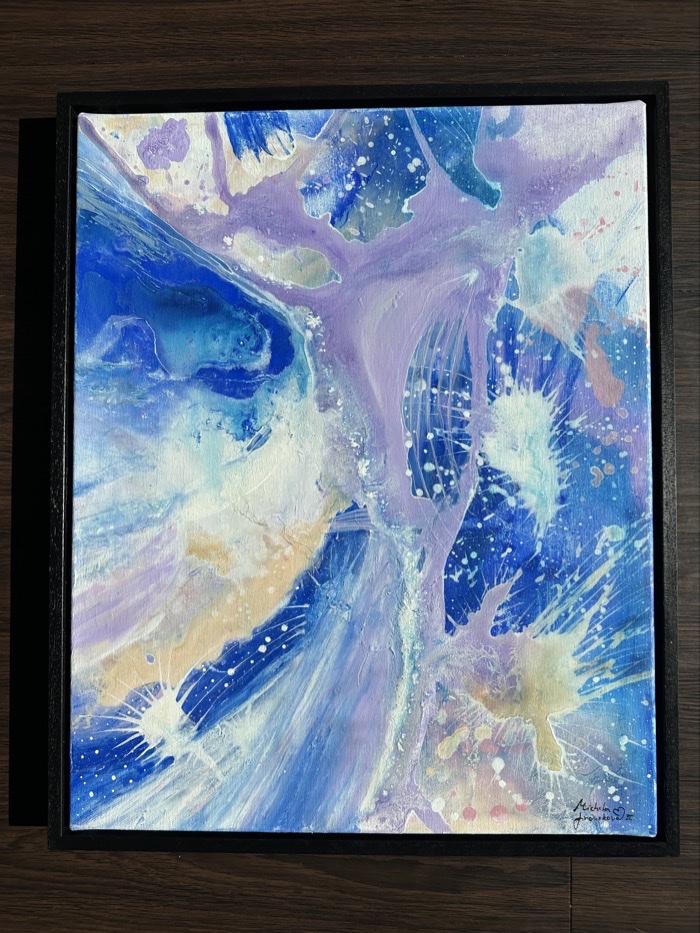 Obraz “Harmonie” zachycuje klidný tanec barev a tvarů v odstínech modré, fialové a jemné růžové. Jemné tahy a textury se prolínají, vytvářejíce pocit plynulosti a rovnováhy, který evokuje dokonalou souhru přírody a vesmíru. Tento obraz vnese do prostoru pocit harmonie a vnitřního klidu, inspirovaný krásou jednoty.