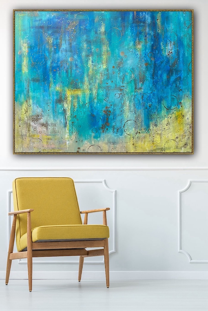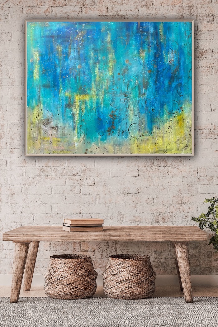 Obraz “Sny v hlubinách” vás zve na cestu pod hladinu, kde se světlo prolíná s tóny modré a tyrkysové, odhaluje tajemství a probouzí sny. Jemné kruhové prvky evokují bubliny stoupající k povrchu, připomínající klid i nekonečnou hloubku oceánu. Tento obraz přináší do prostoru klidnou sílu a kouzlo skrytých snů.